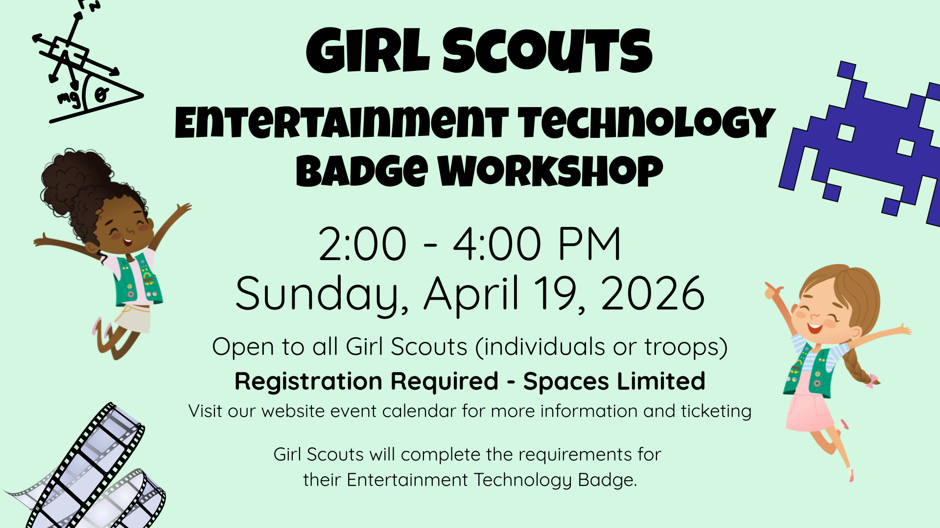 Do you have a small Girl Scout Troop or are you an individual scout wanting to earn more badges? 🎬 Girl Scout Workshop: Entertainment Technology Badge for Juniors 🎮Join us on...