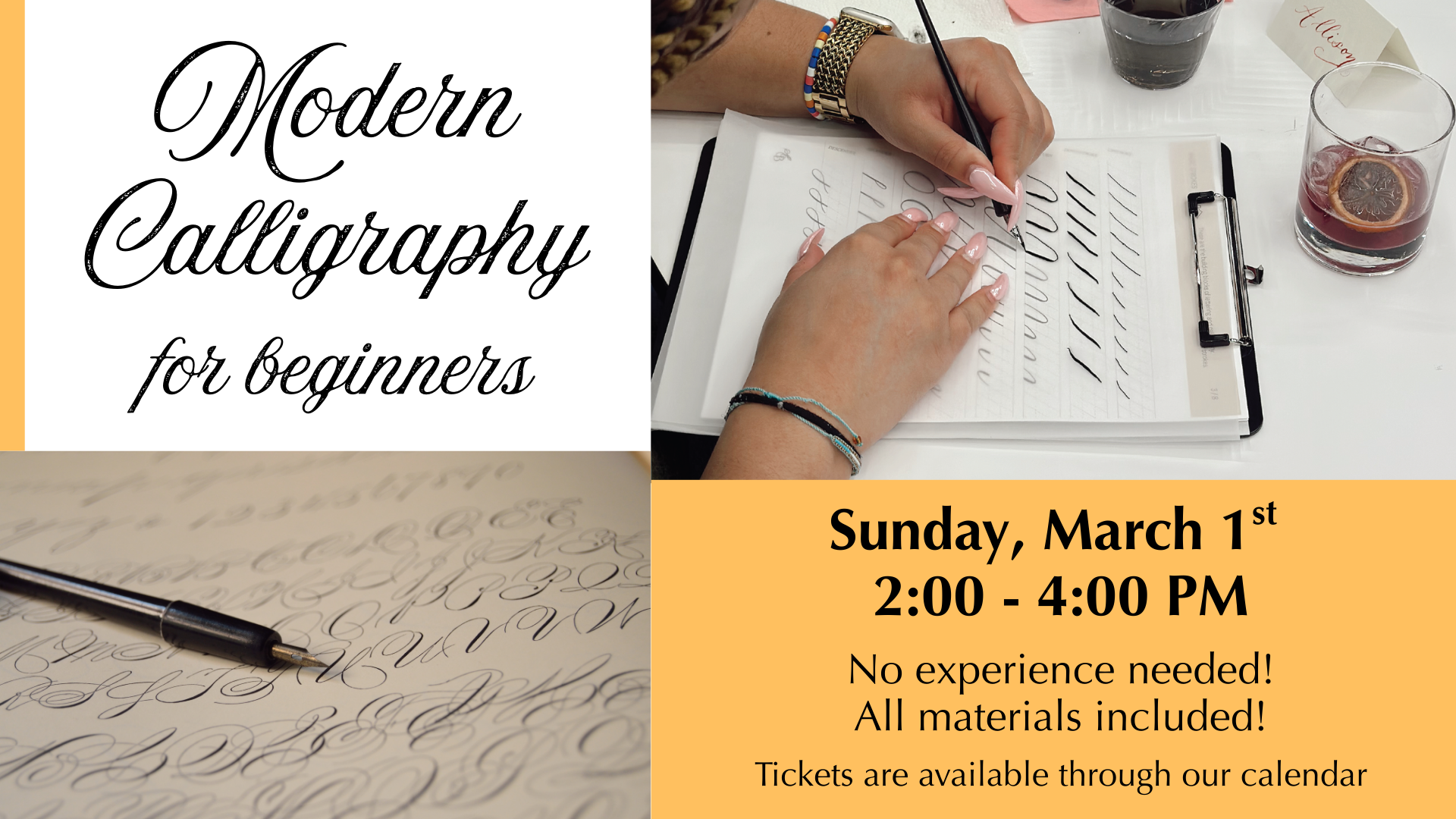 Join us at Mimms Museum of Technology and Art for an interactive workshop that teaches you the fundamentals of modern calligraphy! During the workshop, all the basics will be covered...